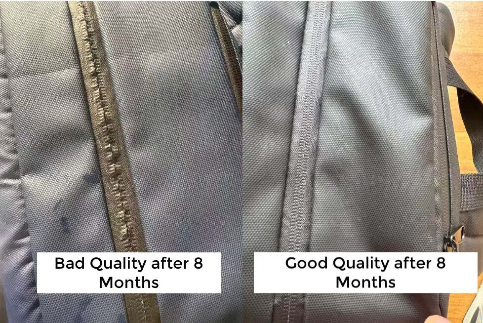 Cutting corners on components like zippers, coatings, or tapes can save a few dollars per order, but cost much more in returns, reputation, and rework.